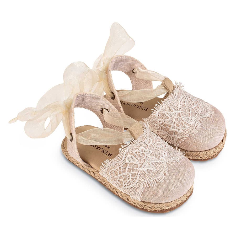 Υφασμάτινη Εσπαντρίγια με Λεπτομέρεια Δαντέλας και Δέσιμο απο Κορδέλα Οργάντζας σε Εκρού Χρώμα