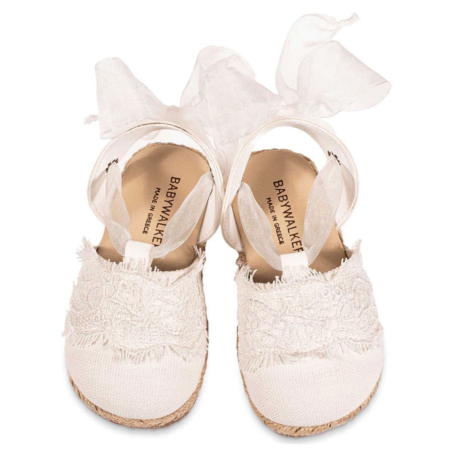 Υφασμάτινη Εσπαντρίγια με Λεπτομέρεια Δαντέλας και Δέσιμο απο Κορδέλα Οργάντζας σε Εκρού Χρώμα