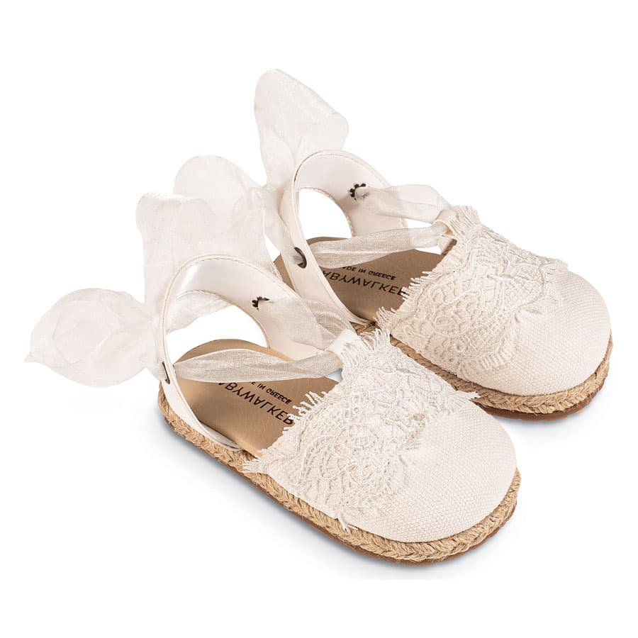 Υφασμάτινη Εσπαντρίγια με Λεπτομέρεια Δαντέλας και Δέσιμο απο Κορδέλα Οργάντζας σε Εκρού Χρώμα