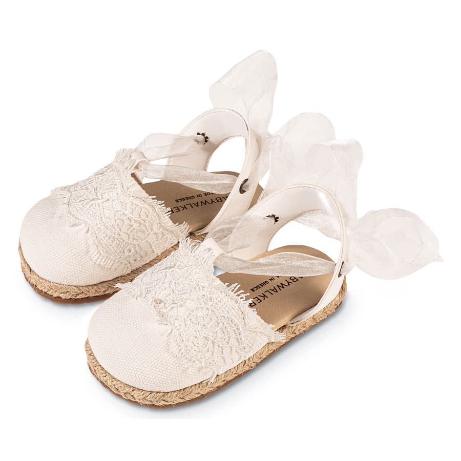 Υφασμάτινη Εσπαντρίγια με Λεπτομέρεια Δαντέλας και Δέσιμο απο Κορδέλα Οργάντζας σε Εκρού Χρώμα