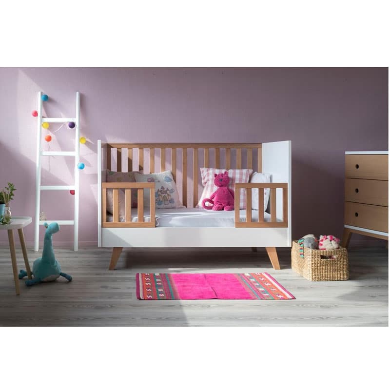 Μετατρέπεται σε εφηβικό, μπορεί να χρησιμοποιηθεί από βρέφος έως 7-8 ετών. Στην αρχή, τους πρώτους μήνες τοποθετούμε το στρώμα στην επάνω θέση για να είναι άμεση η επαφή με το μωρό. Καθώς το μωράκι σας μεγαλώνει, για μεγαλύτερη ασφάλεια, κατεβάζουμε το στρώμα στο πιο κάτω επίπεδο για να αυξήσουμε την απόσταση.
