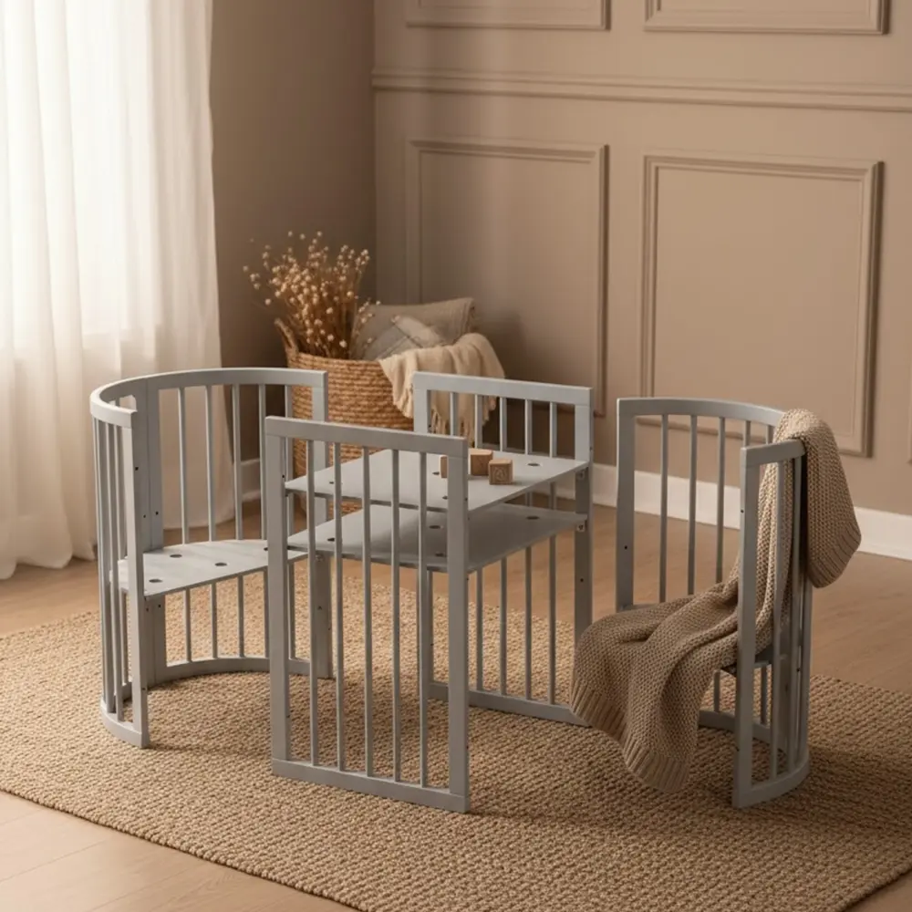 Η κούνια SMART BED ROUND 9 σε 1 είναι ένα αναπτυσσόμενο κρεβάτι το οποίο μεγαλώνει μαζί με το μωρό σας από τη γέννησή του έως περίπου τα 10 του έτη. Είναι κατασκευασμένο από υψηλής ποιότητας ξύλο οξιάς και φράξος.