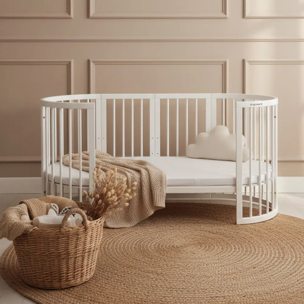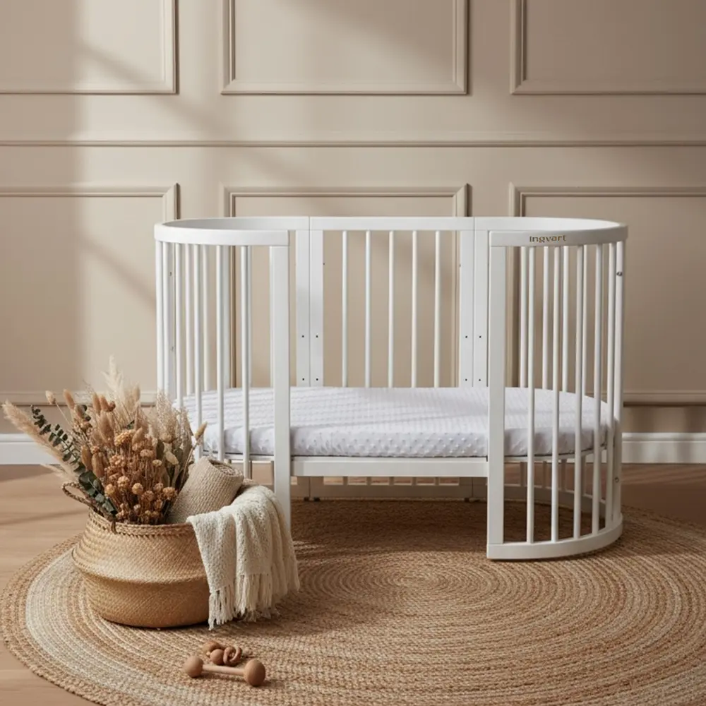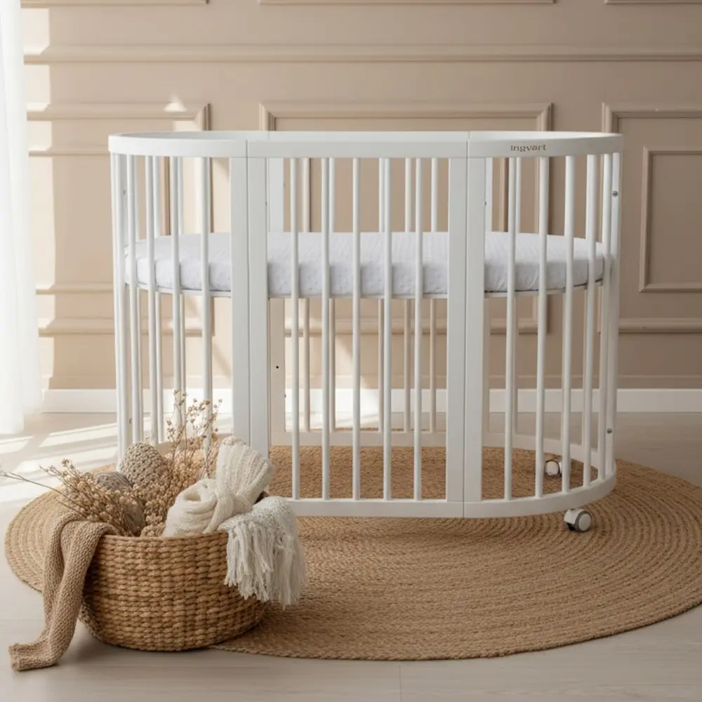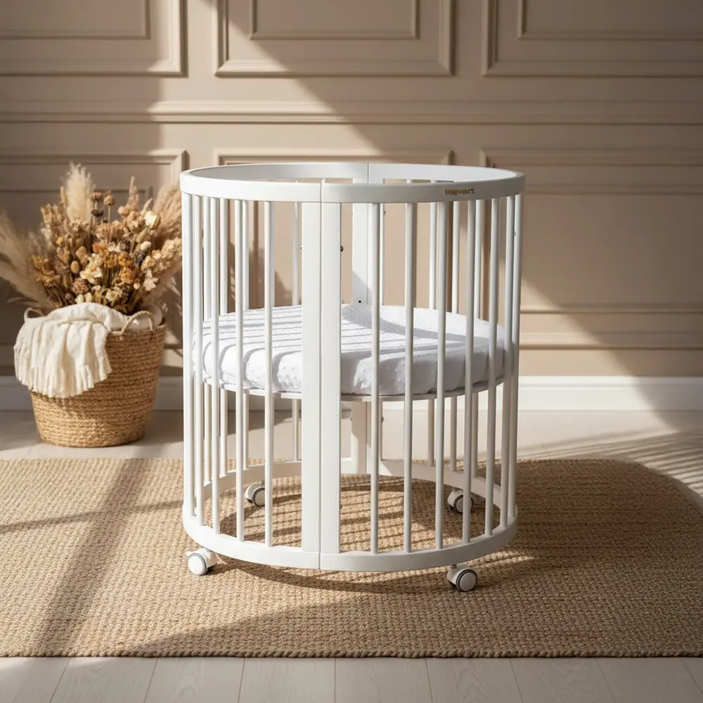 IngVart Κούνια Smart Bed Round 9 σε 1 Λευκό με Διαστάσεις 77x77/125cm (72x72/120)
