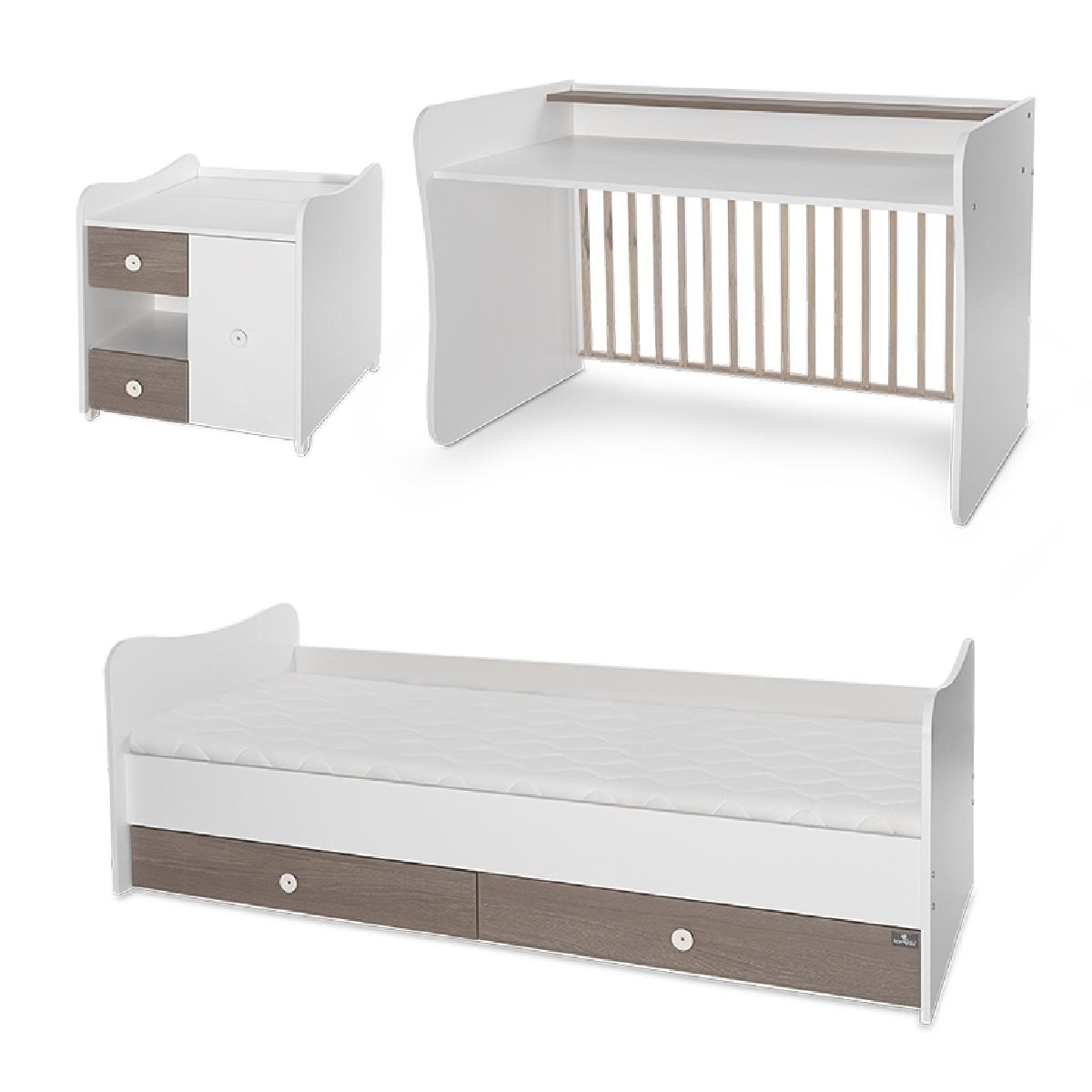 Το Mini Max είναι ιδανική λύση για μετατροπή σε πλήρες παιδικό δωμάτιο. Ακολουθεί το μωρό σας από την βρεφική ηλικία μέχρι και την εφηβική. Αποτελείται από βρεφική κούνια με μηχανισμό λικνίσματος και αλλαξιέρα – συρταριέρα. Μελλοντικά σας παρέχει ένα πλήρες παιδικό δωμάτιο αποτελούμενο από εφηβικό κρεβάτι, γραφείο και μία συρταριέρα.