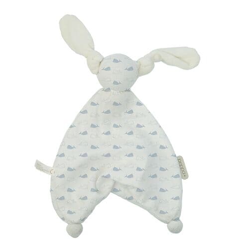 Babylonia Floppy Musl Κουκλάκι παρηγοριάς από οργανικό βαμβάκι με σχέδιο γαλάζιες φάλαινες!