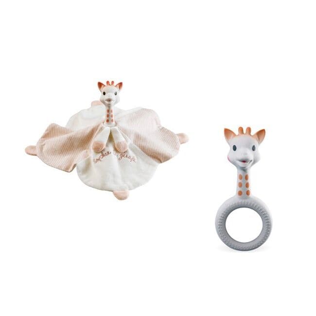 - Ένα δακτύλιο οδοντοφυίας Σόφι για να ανακουφίζει τα ερεθισμένα ούλα του μωρού. Έχει πολλά μέρη για "μασούλιμα" (αφτιά, δαχτυλίδι, λαιμό) για μεγαλύτερη διασκέδαση.