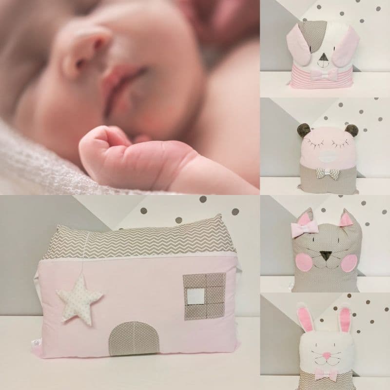 Το κεντρικό κομμάτι είναι ένα σπιτάκι που “φιλοξενεί” τα όμορφα και γλυκά ζωάκια της πάντας Sugar Family. Tα υπόλοιπα μαξιλάρια είναι μια γατούλα, ένα σκυλάκι, ένα κουνελάκι και ένα φιλικό αρκουδάκι πάντα.
