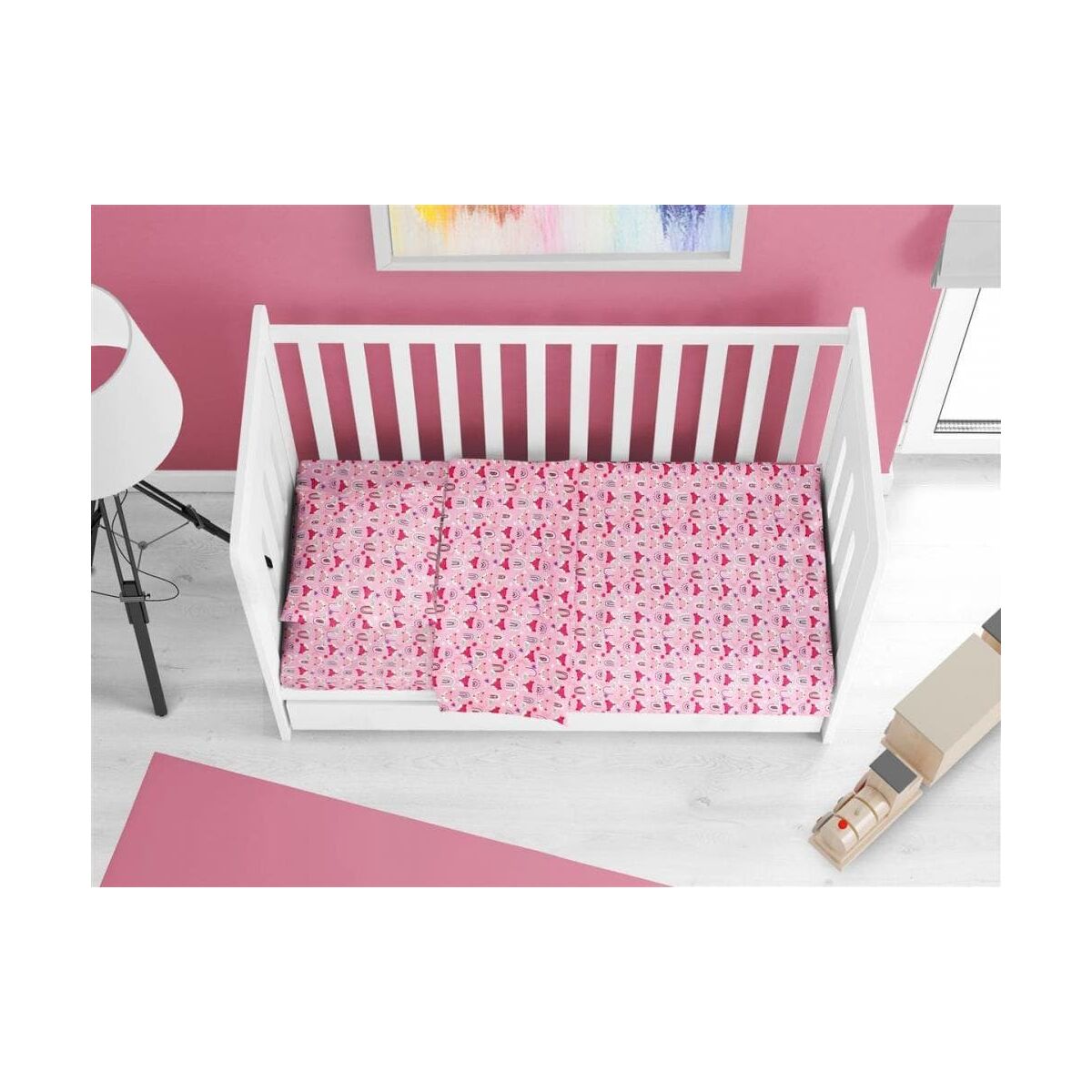 Dimcol Σετ Βρεφικά Σεντόνια Κούνιας 3τμχ 100% Cotton Bebe Fox 525 120X160 Pink
