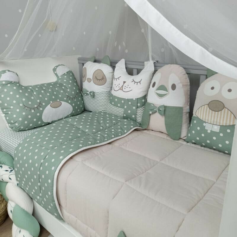 • Την πάντα, η οποία αποτελείται από 5 μαξιλαράκια που δένονται μεταξύ τους αλλά και στα κάγκελα της κούνιας. Οι πέντε μικροί φίλοι μία αρκούδα, ένα ρακούν, μία γατούλα, ένας πιγκουίνος και ένα αρκουδάκι πάντα γίνονται η καλύτερη παρέα του μωρού, προστατεύοντάς το ταυτόχρονα από χτυπήματα στα κάγκελα της κούνιας. Πλένεται στο πλυντήριο στο κρύο πρόγραμμα και δεν σιδερώνεται. Η διάσταση πάντας 40cm x 2m περίπου.
