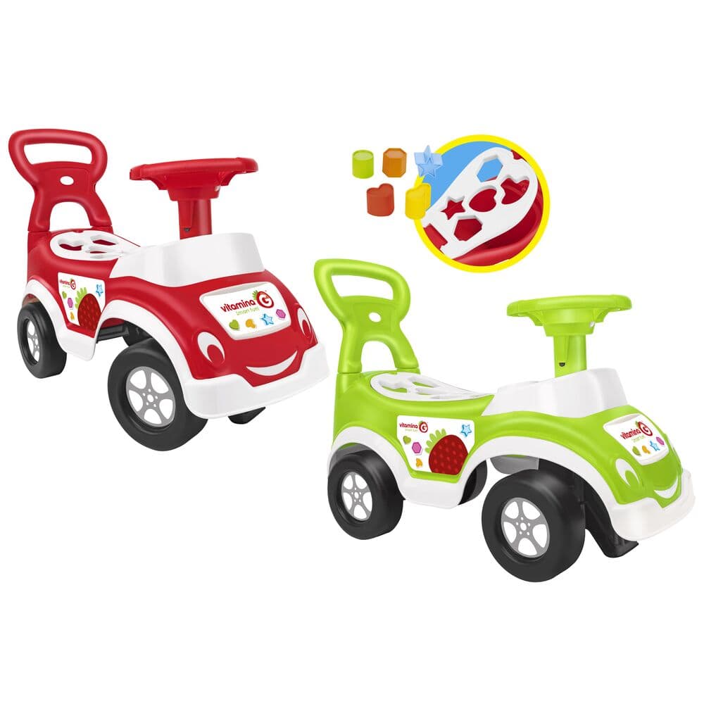 Διασκεδαστική βόλτα με διπλή δυνατότητα αναπαραγωγής: μπορεί να χρησιμοποιηθεί ως μίνι όχημα για κίνηση, εξοπλισμένο με κόρνα εργασίας ή ως παιχνίδι παζλ: τα παιδιά θα πρέπει να βρουν την αντιστοιχία μεταξύ των καλουπιών που παρέχονται και των οπών στο κάθισμα της βόλτας. Περιλαμβάνονται 5 χρωματιστά καλούπια!