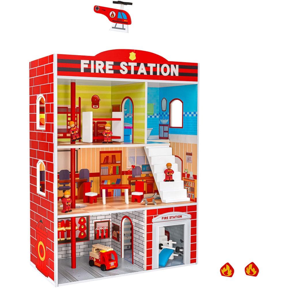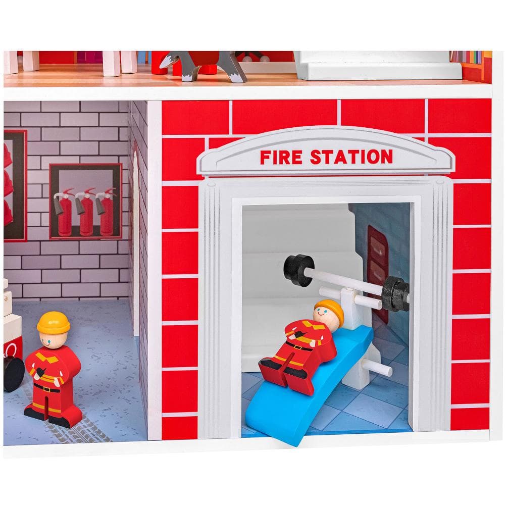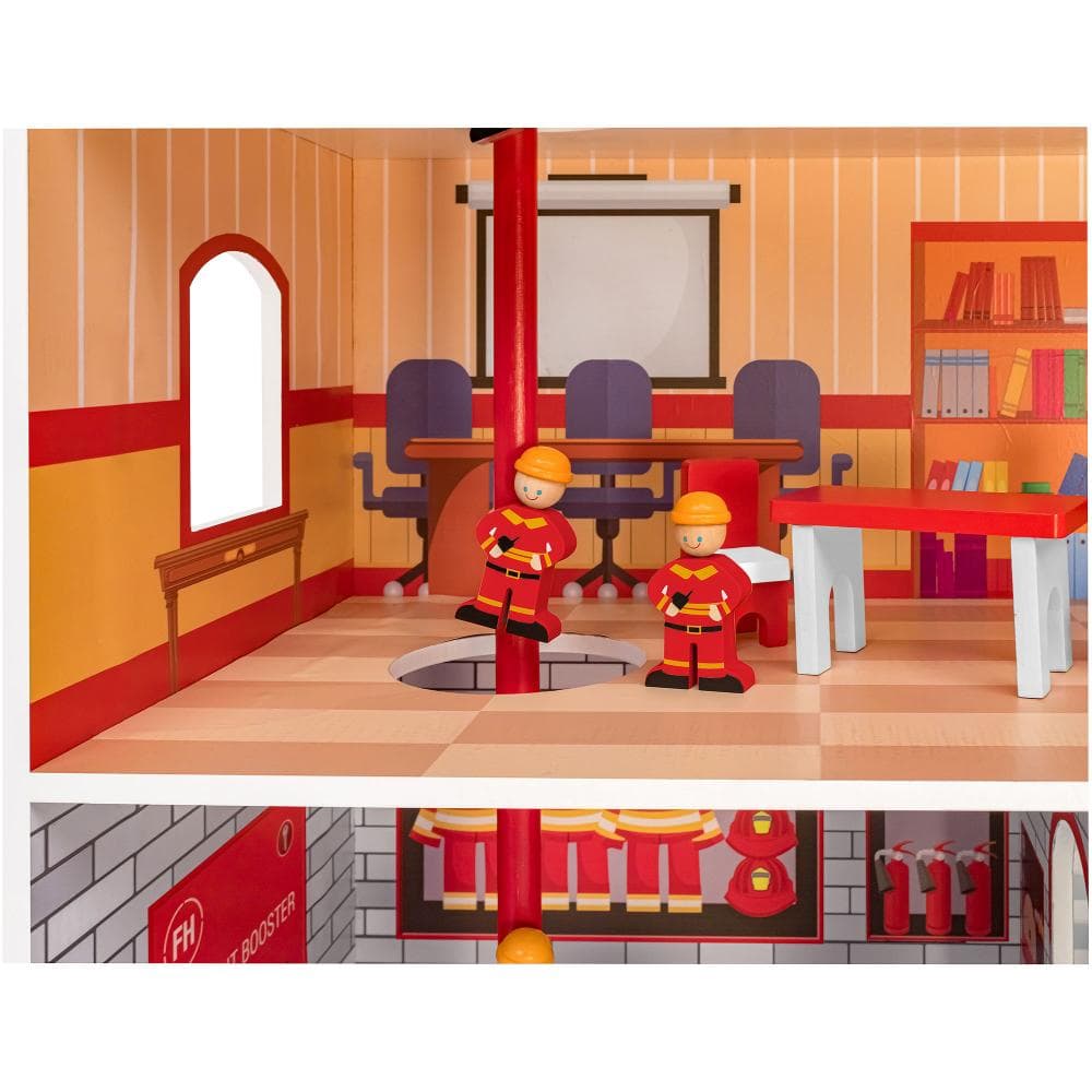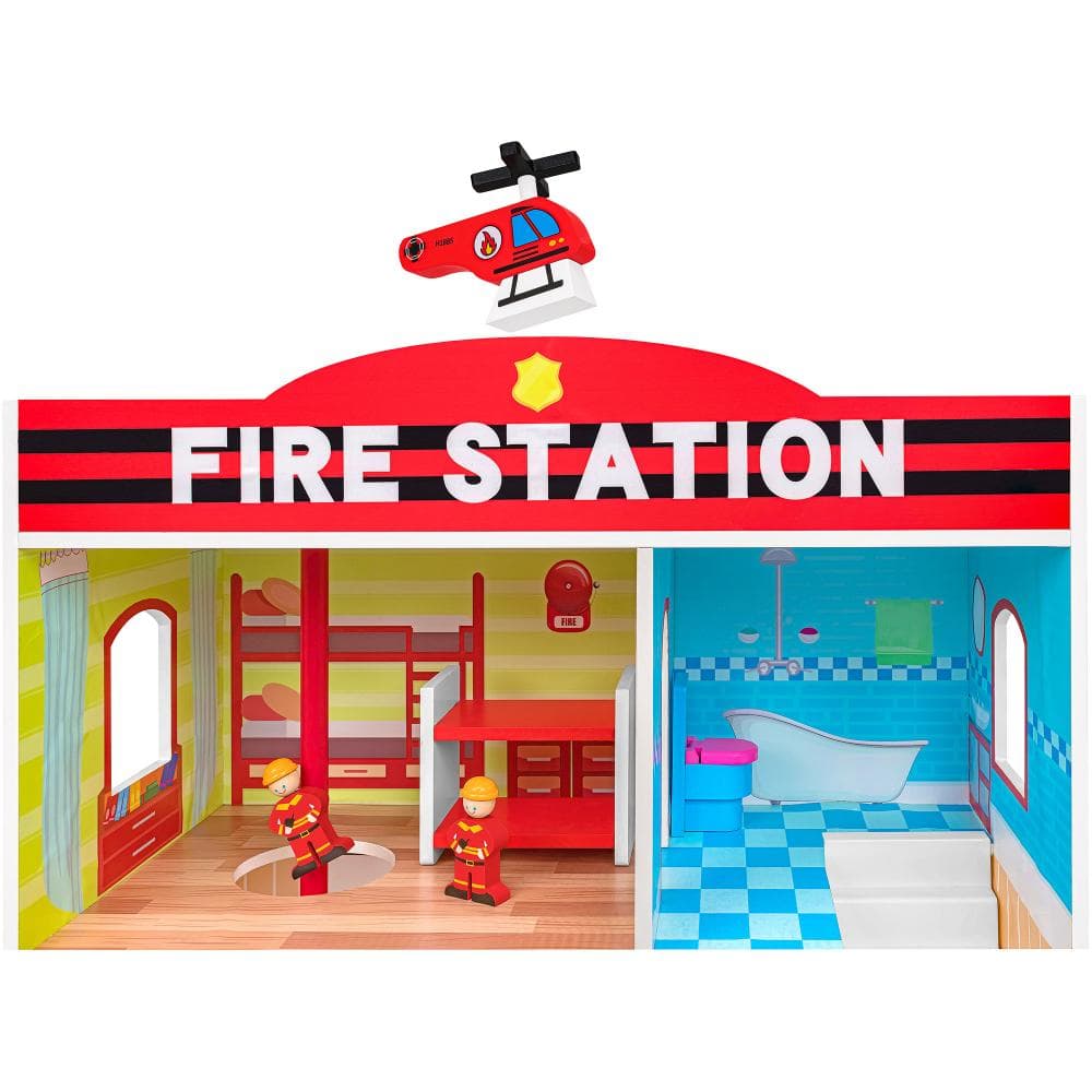 Καλά διακοσμημένο και δομημένο ξύλινο πυροσβεστικό σταθμό σε 3 ορόφους. Κάθε δωμάτιο χαρακτηρίζεται από πολλά ξύλινα έπιπλα και αξεσουάρ που μπορείτε να μετακινείτε για να εφεύρετε νέα σενάρια κάθε φορά. Το πακέτο περιλαμβάνει πυροσβέστες, ξύλινους άνδρες, έτοιμους να σώσουν την πόλη από την επόμενη φωτιά.