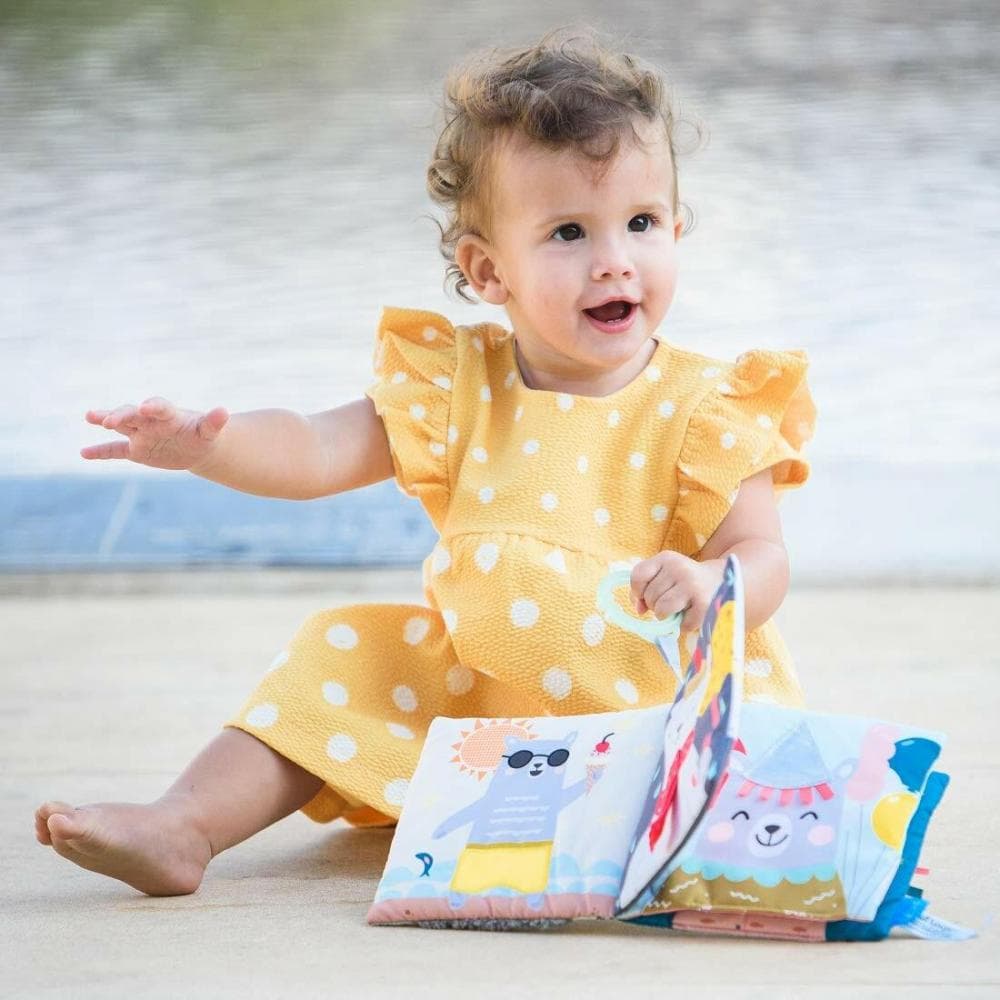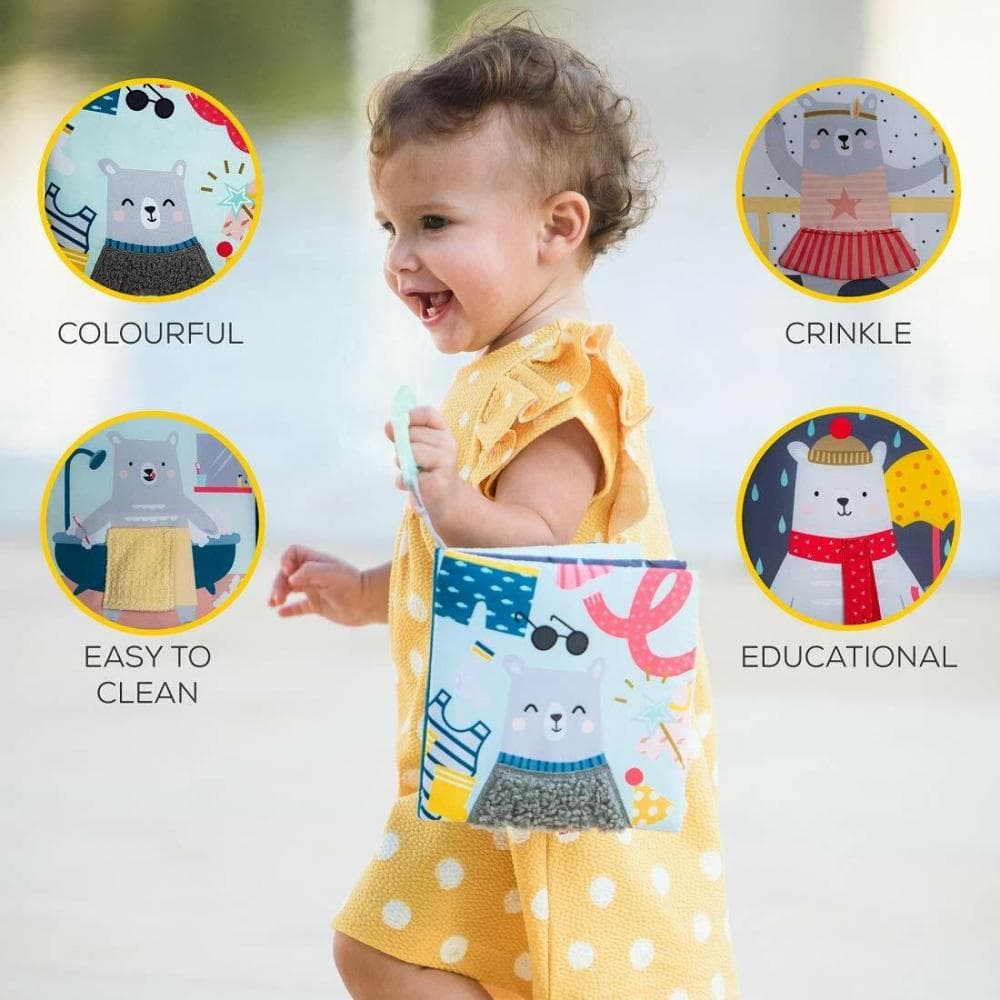 Ένα μαλακό, υφασμάτινο βιβλίο διπλής όψης με διαδραστικές σελίδες. Ενθαρρύνει το μωρό σας στην εξάσκηση των κινητικών του δεξιοτήτων, παίζοντας με τις διαφορετικές υφές. Κατασκευασμένο από μη τοξικά, ασφαλή και υψηλής ποιότητας υλικά με επιπλέον αντοχή και χωρίς αιχμηρές άκρες.