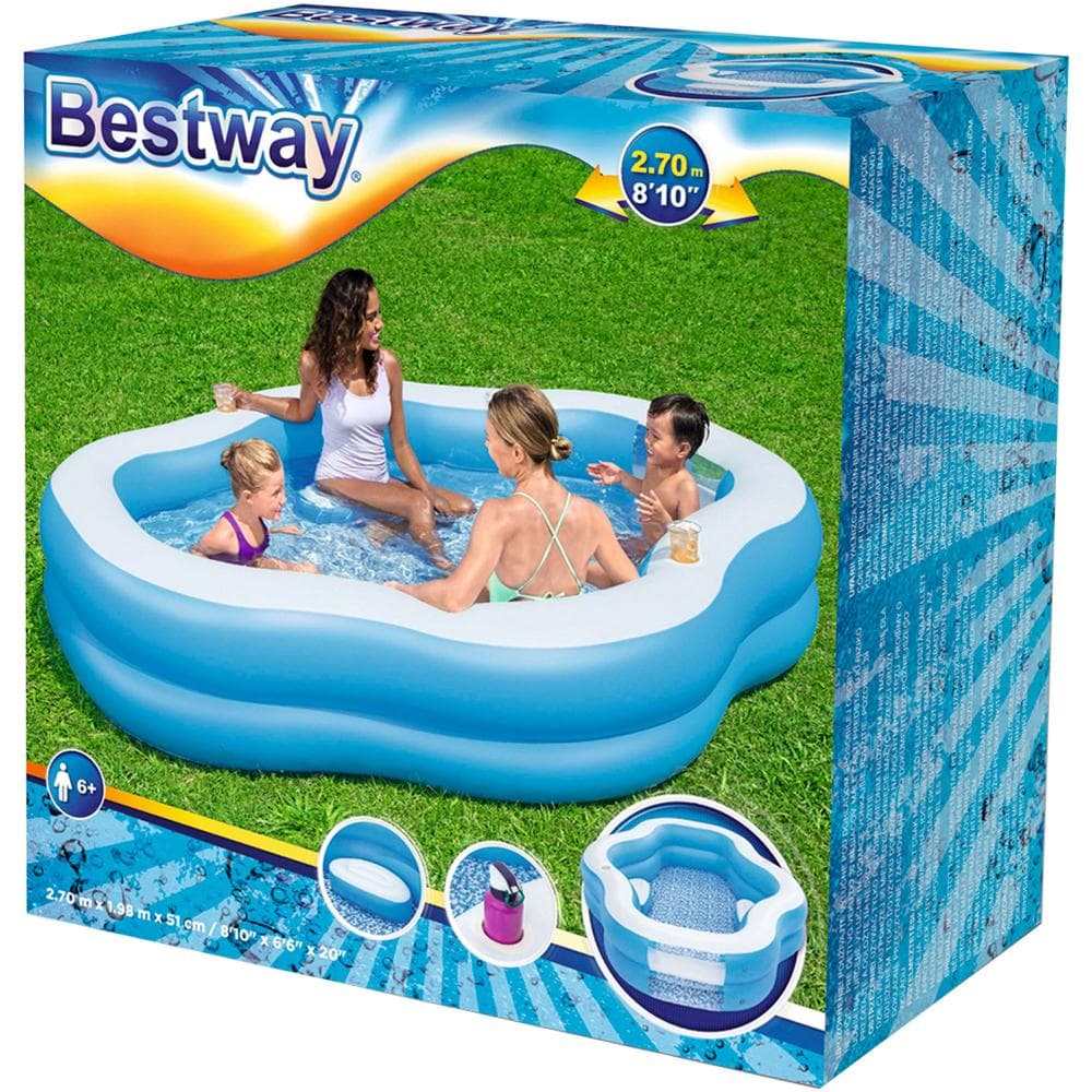 Ιδανική για παιδιά και ενήλικες, η οικογενειακή πισίνα Splashview είναι δομημένη σε δύο περιφερειακούς δακτυλίους, με 2 εσωτερικά καθίσματα και 2 άνετες θήκες ποτών που σας επιτρέπουν να ζήσετε στιγμές απόλυτης χαλάρωσης.