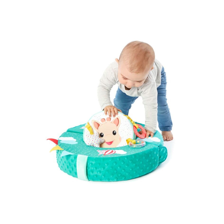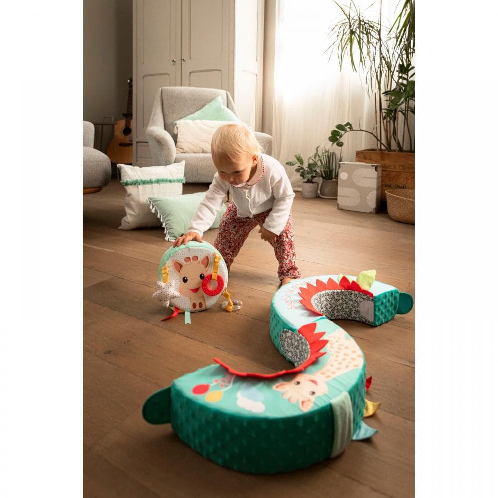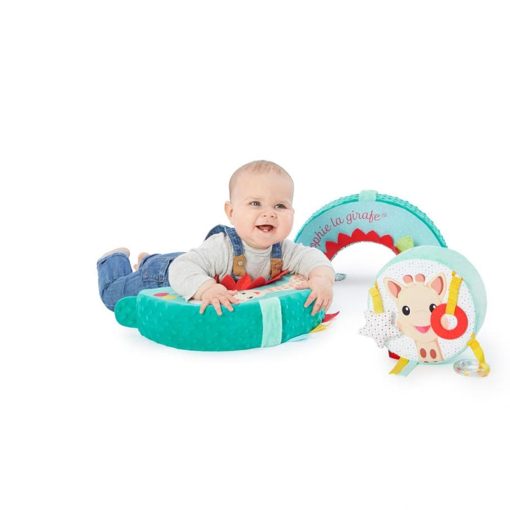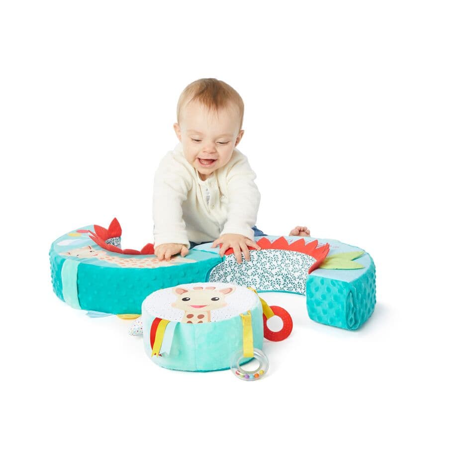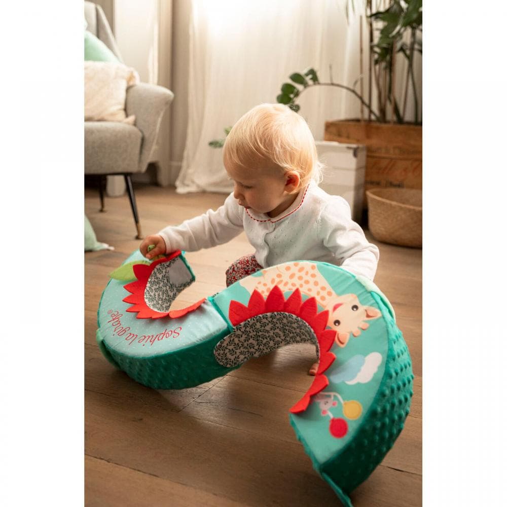 Το πολυμορφικό μαξιλάρι της αγαπημένης μας Σόφι της καμηλοπάρδαλης είναι ιδανικό για την ανάπτυξη των αδρών κινητικών δεξιοτήτων του μωρού και την τόνωση του συντονισμού χεριού-ματιού!