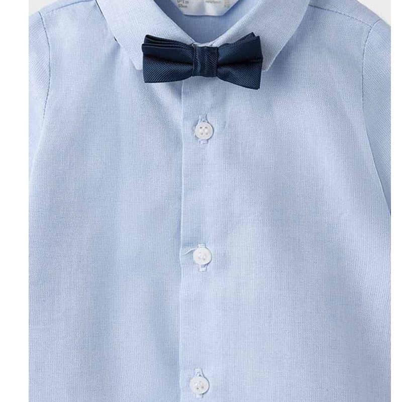 Πουκάμισο μακρυμάνικο για Νεογέννητο αγόρι με κουμπιά στους καρπούς. Γιακάς πουκαμίσου με ελαστικό, ρυθμιζόμενο παπιγιόν Με κόπιτσες μπροστά.