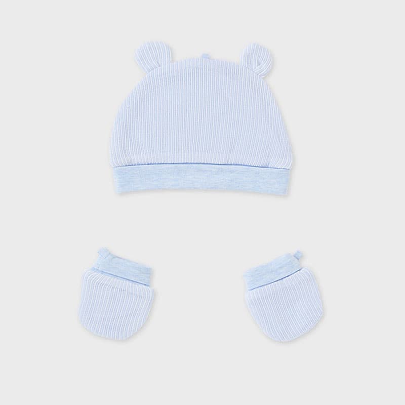 Σετ που αποτελείται από σκούφο και γάντια για νεογέννητο.